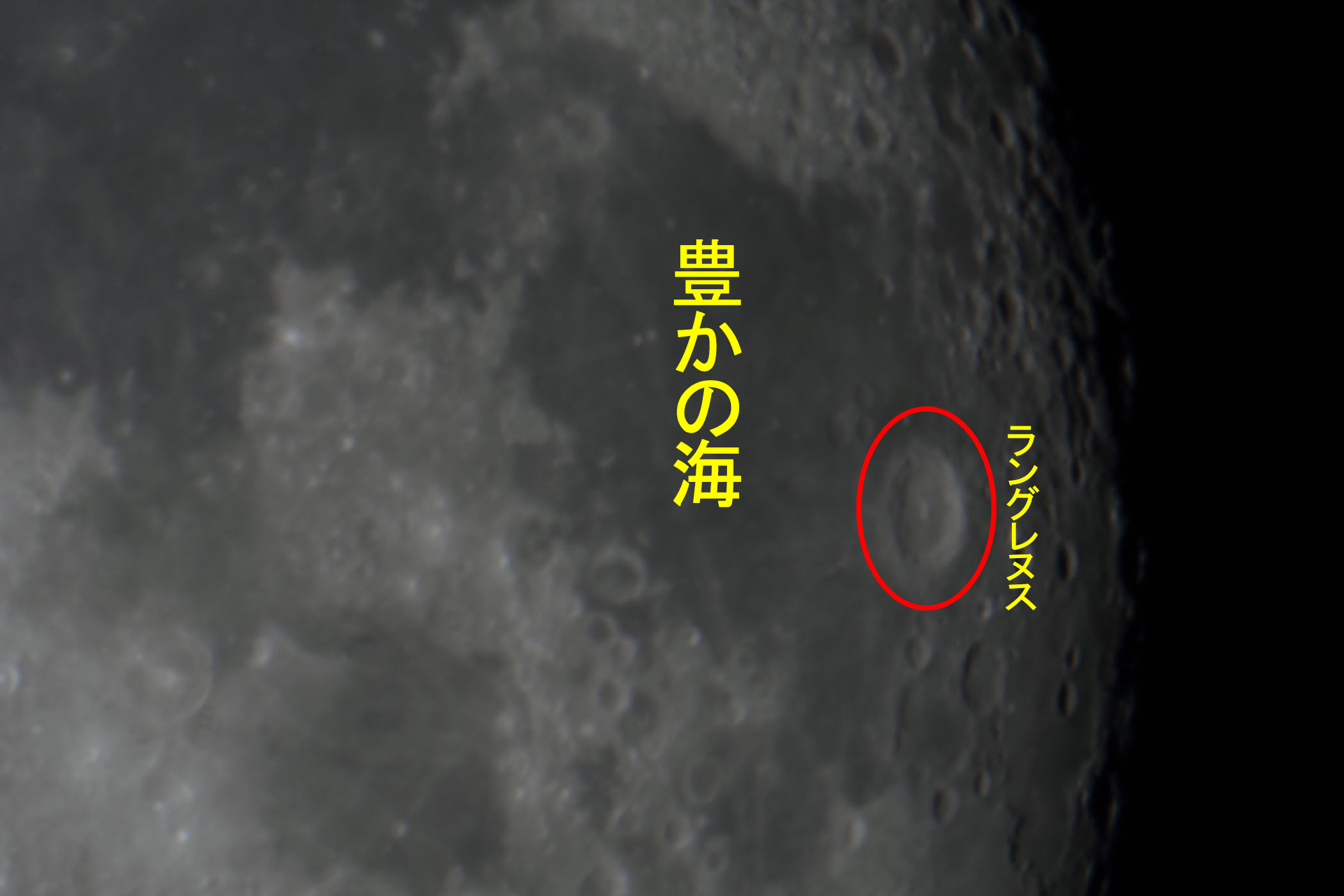 「豊かの海」・「ラングレヌス」(クレーター)などが見えています。