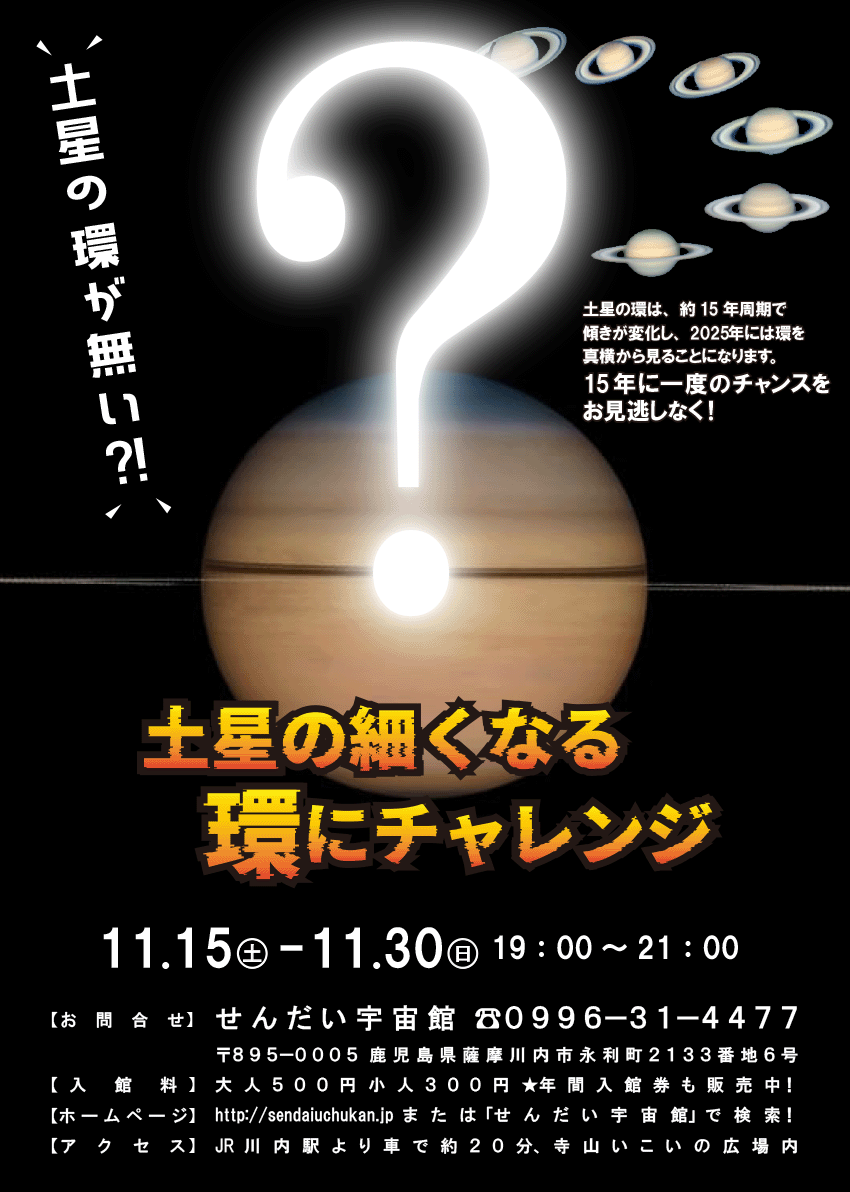 せんだい宇宙館では、11月下旬のころ最も細く見えます。